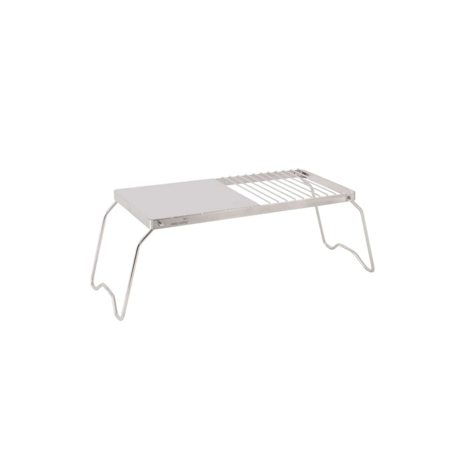 The Campfire Grill Trivet is a versatile tool for outdoor cooking. Made from stainless steel, it serves as both a grill and a trivet for pots and pans.