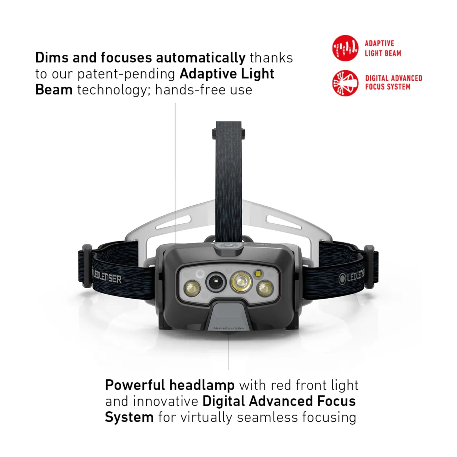 The Ledlenser HF8R CORE rechargeable head torch is a powerhouse of performance and class-leading technology. Three brightness levels plus a 1600 lumen Boost are complimented with a red front light to protect night vision. The standout feature is the patent-pending Adaptive Light Beam Technology which, once activated, allows automatic dimming and focusing; making it a hands-free head torch which requires no manual control at all. Seamless spot to flood focusing is delivered by another patent-pending technology, the intuitive Digital Advanced Focus System.