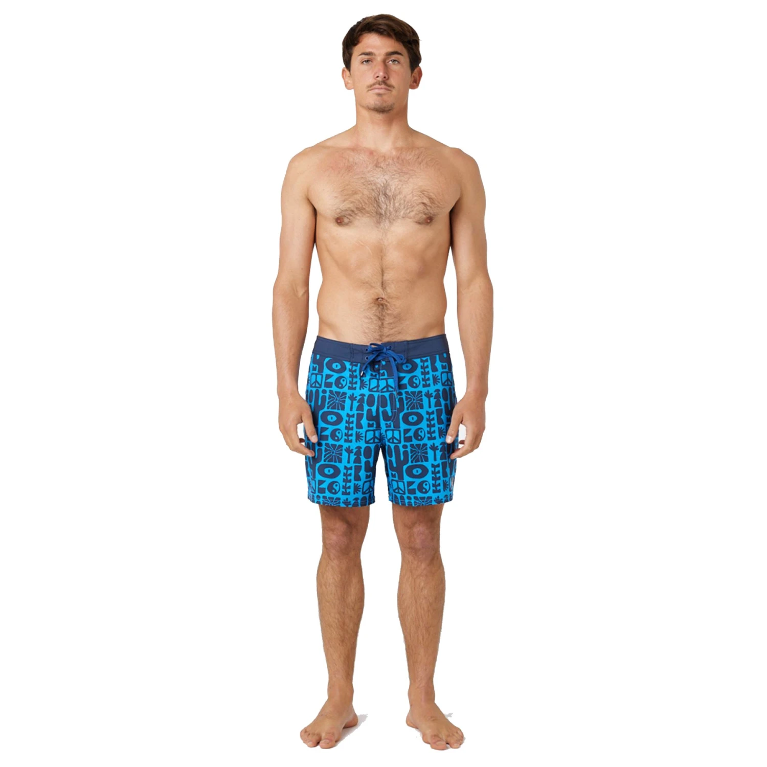 The Mirage Retro Sealife boardshort is both technical and ethnic! This light and super-durable boardshort is made of recycled material. It features a plain flat belt and an ethnic print in navy blue and retro yellow.