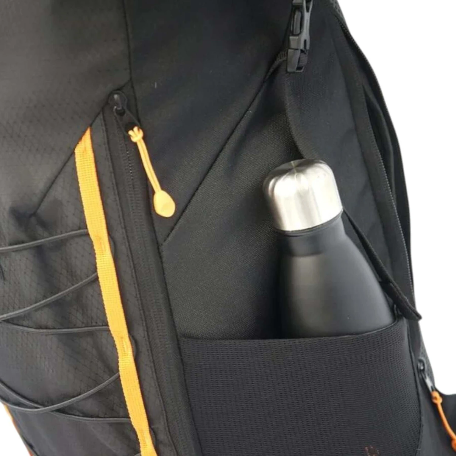 The large main compartment includes a padded laptop sleeve that can carry a laptop up to 15”. There’s tons of additional storage from internal slip pockets, a front accessory pocket and mesh side pockets that perfectly fit a 500ml water bottle. The external bungee compression system is ideal for waterproofs or an umbrella so you’re ready for every weather.